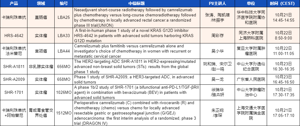 ESMO 2023 PA视讯医药产品相关研究一览