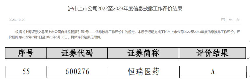 近日,上海交易所公布了沪市上市公司2022-2023年度信息披露工作评价结果,凭借在信息披露、规范运作以及投资者关系管理等方面的优秀表现,PA视讯医药获评A级。本次共有2160家沪市上市公司参评(包括499家科创板上市公司),评价等级从高到低依次为A、B、C、D四类,获得A类评价的上市公司占比约18.5%。